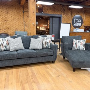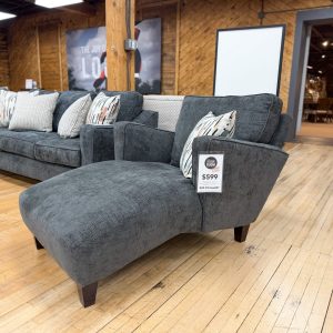 Made in Mississippi. Very unique, extra cozy chaise lounge covered in an unbelievably soft & fluffy jumbo corduroy fabric. It’s bigger than it looks in the photos – almost as wide as a full-size bed! The extra-wide arms have built-in stainless steel cupholders to keep your drinks secure. Includes two throw pillows as shown. Built with solid hardwood frame.