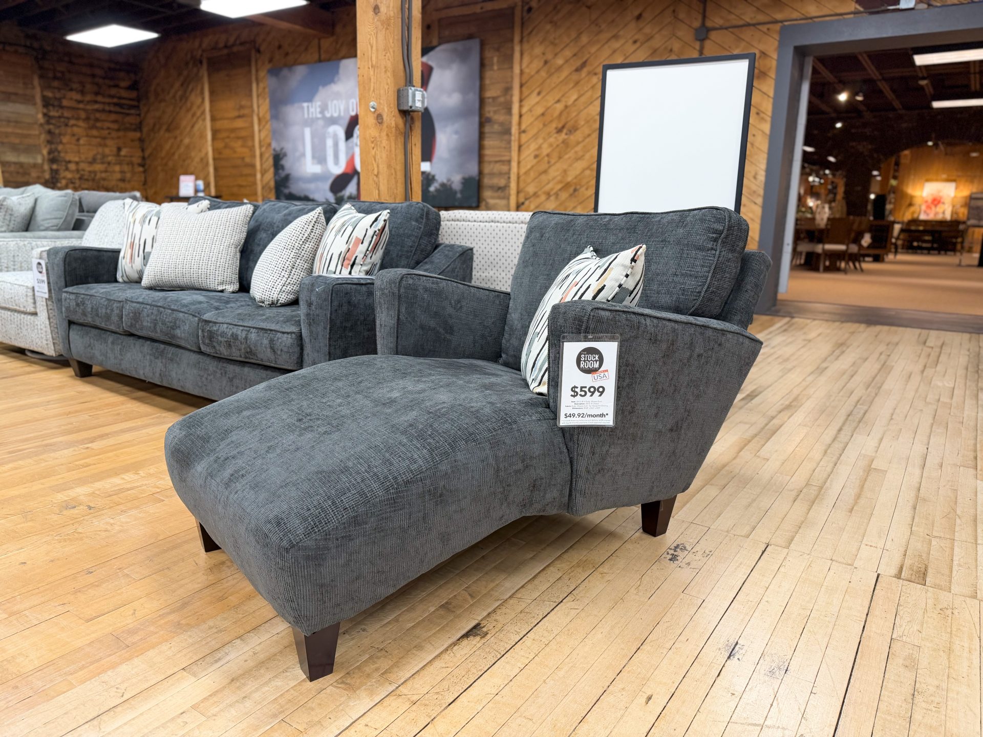 This dark chaise lounge is designed for superior comfort and style, making it the perfect accent piece to your room. Upholstered in a dusk fabric and resting on tapered wooden legs, this chair blends comfort with classic craftsmanship.