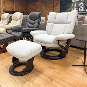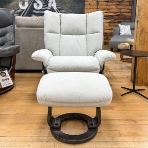 Made in Tennessee. Extra plush pillow top manual reclining chair & a half. Extra wide and deep seated recliner gives you plenty of room to get comfortable. Super soft minky fabric upholstery in heather charcoal color. Smooth & quiet counter-balanced reclining mechanism with a durable steel seat box and a heavy 8-gauge sinuous steel spring system.